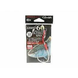 This the heaviest in the Gamakatsu range of jigging assists. It features a heavy duty braided assist cord (red) with stainless steel solid ring. The hook itself is a great unique shape and designed for awesome hook setting on all those big pelagic’s. Designed for targeting big Dog Tooth Tuna etc. If this sounds too heavy for your needs then try looking at the Gamakatsu assist 62 which is slightly less heavier in gauge and is well suited for targeting the bottom to mid water species like Amberjack, Kingfish, Red Emperor, Nannygai etc.