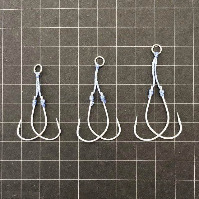 JLT-46 JIGEN LONG TWIN – Long type twin assist that is easy to match with semi-long jigs. The hook uses “Jigen (JH-10)”. By incorporating a fluoro core in the original PE line, the assist line is made firm and the hooks are not entangled with each other.
