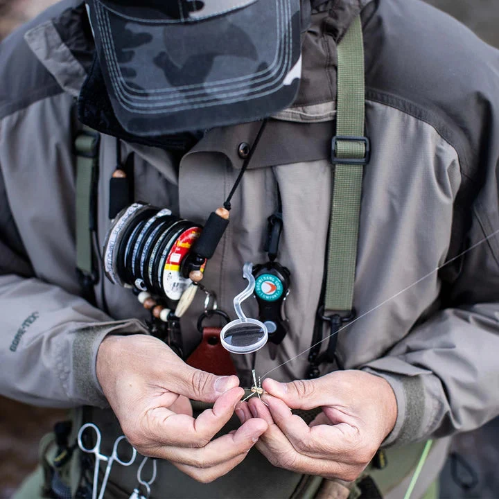 The Long SNIP Cheaters Fishing Line Cutter cuts clean and precise through braid, mono, and fluoro fishing lines. An ideal solution for those who need a closer look when working with small tackle, the Long SNIP Cheaters feature a 3x magnification lens. With the built-on carabiner, clip it to your hip or vest so it’s always handy and never lost. Snip the fishing line and let it go, the built-in tether retracts back into place until you need it again, no more looking around the boat with your hands full for a set of fishing pliers or nippers. If you love to get out on the water early, as an added bonus, we have an LED Light model available as well.