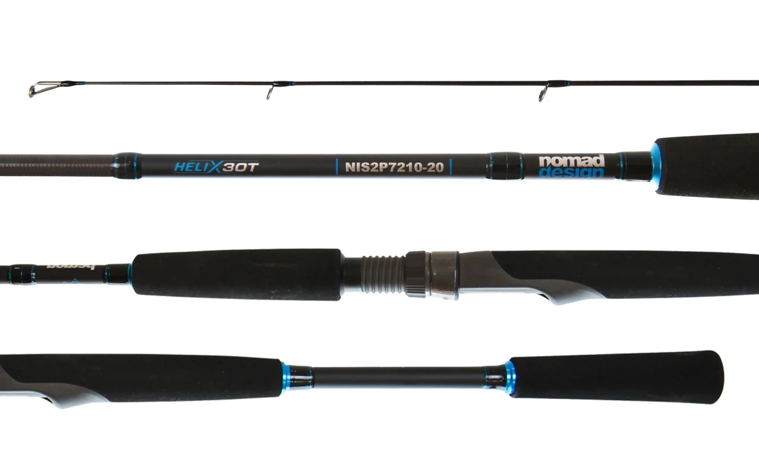 The NOMAD DESIGN INSHORE SPIN rods are designed for working a variety of smaller lures and soft plastics. The tip is designed to be light enough to cast small lures, but stiff enough to impart action to the lure. The medium-fast taper allows enough strength in the butt section to provide stopping power when you need it.