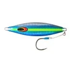 The Buffalo is a Slow Pitch Jig, or often called a flatfall jig. It is centre balanced and will fall with a fluttering action enticing the fish to strike as the lure falls. It is ideal for sinking through schools of tuna haning deep, or using for reef species hanging down deep when worked with long slow flicks of the rod. The Buffalo comes rigged with a super strong and super sharp BKK assist hook rigged on the tail of the jig to assist with the slower fall rate. One of the most effective jig styles imaginable.