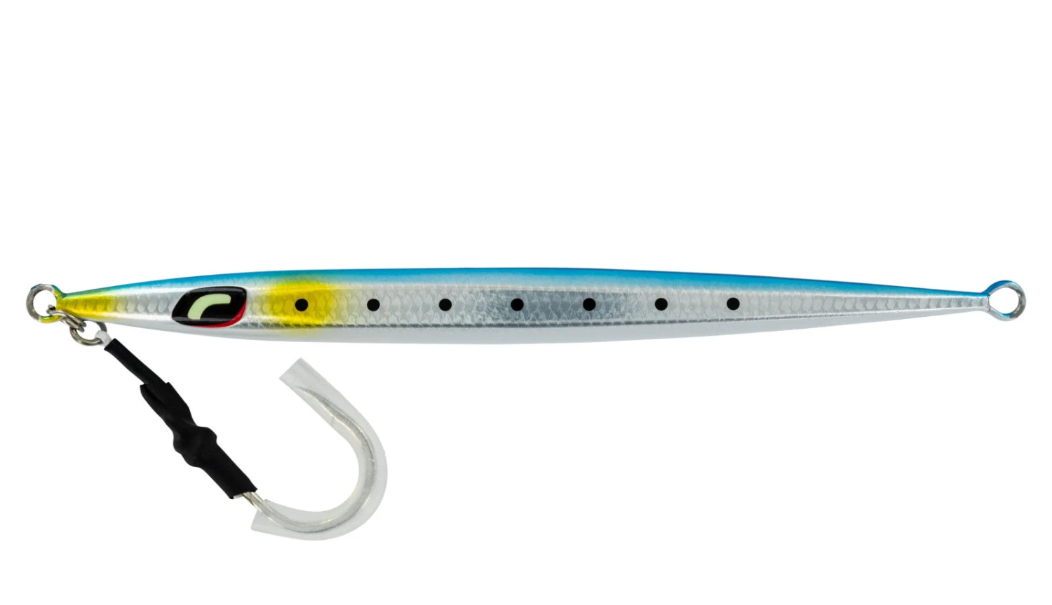 Shimano designed the SHIMMERFALL to sink fast and be easy for anglers to work. The jig’s slender design enables it to quickly cut through the water, making it ideal for jigging in deeper water or fishing in fast drift situations. The SHIMMERFALL’s design incorporates through-wire construction for added durability for increased confidence when fighting large game fish off the bottom. The SHIMMERFALL’s tapered edges make the jig come to life with proper action using little effort, so it’s sure to drive aggressive bites from bottom fish or pelagics alike.