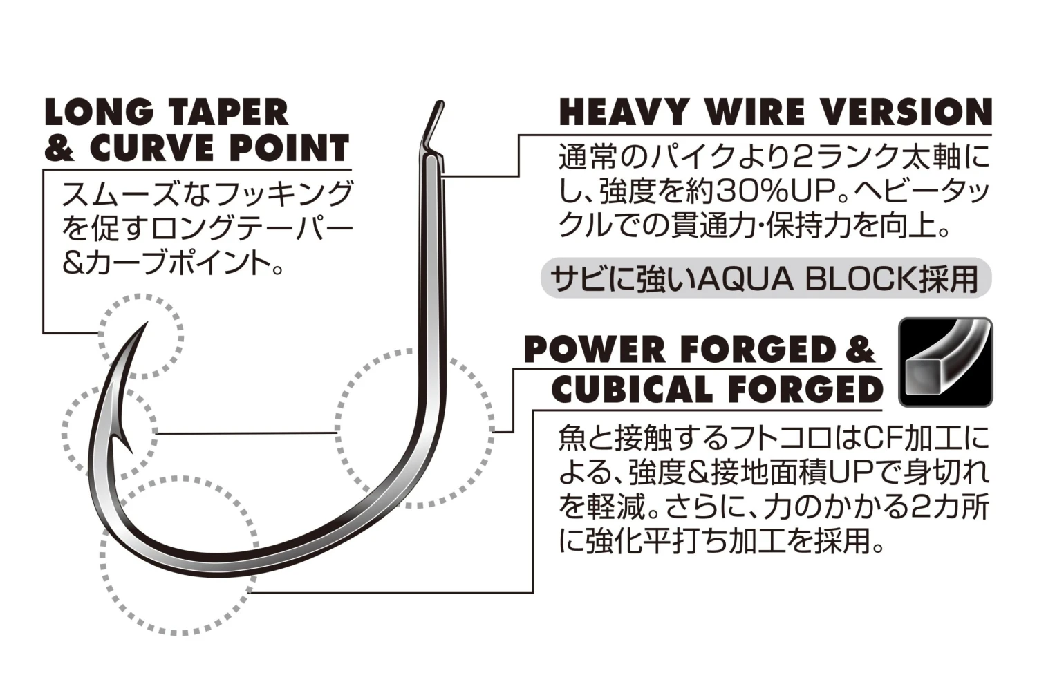 With the ideal shape of the “Pike AS-03” assist hook, the wire diameter has been increased, with a pipe that reflects not only light jigging but also power jigging, which also responds to power jigging. It is a specification.