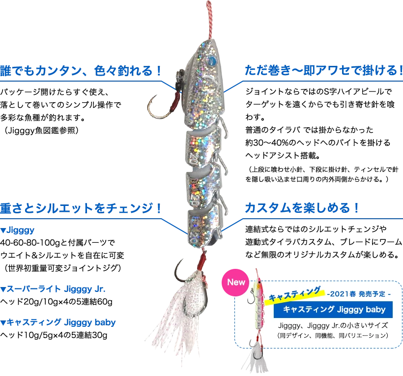 The Jigggy Jig is an innovative jointed swimming jig with an adjustable weight system. Each joint is a weight that you can adjust to suit depth or current.