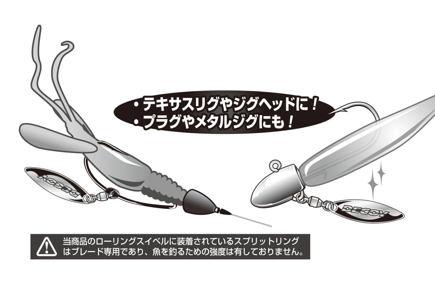 A blade with a high-rotation bearing swivel that is ideal for tuning worm rigs such as plugs and jig heads, spinner baits, and frogs.
