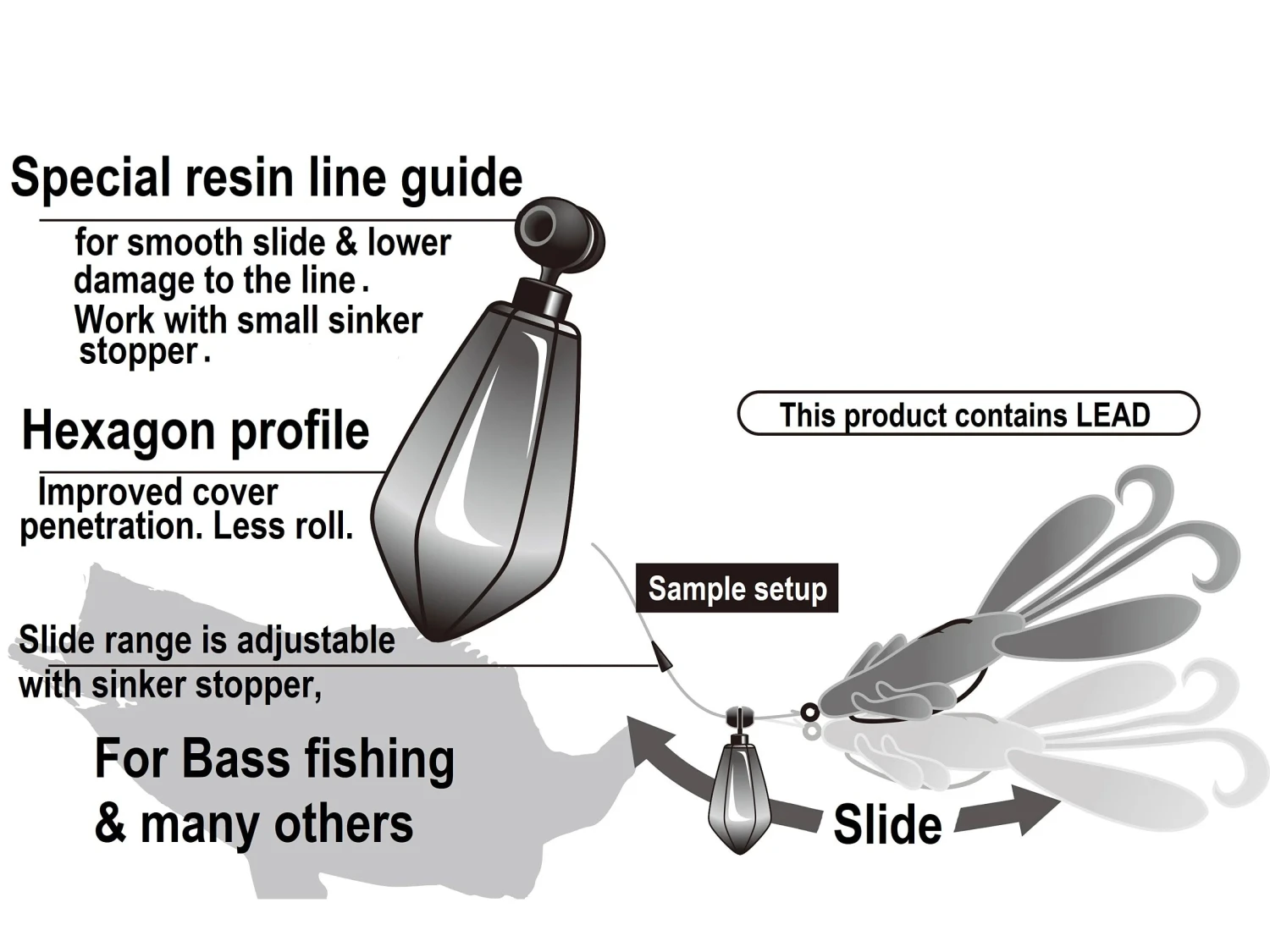 Decoy DS-9 TX-DAN Sliding Sinker is a sinker exclusively for free Texas rigs, which has good flight distance, fall speed, snagless performance, and has many merits such as easy biting without discomfort. Equipped with guide parts on the eye that do not easily damage the line. This reduces the phenomenon that knots get stuck in the eye and lock without using beads. In addition, a relatively small diameter sinker stopper can be used, and it can also be applied to fixed rigs.