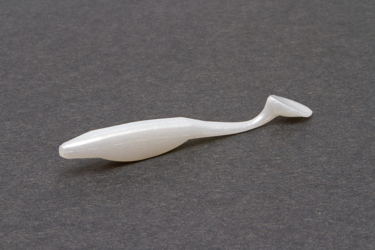 All of the great characteristics of the original Super Fluke, now with a hard-pounding paddle tail and in a downsized package. You can fish it like its predecessor, with a swoop and glide motion, or wind it steadily and feel it pulse like a spinnerbait. It’s great by itself or on the back of a swim jig or vibrating jig, where it calls fish from a distance with its sizable acoustic footprint. The Jr., can also be used on back of a fish head spin or under spin style bait.