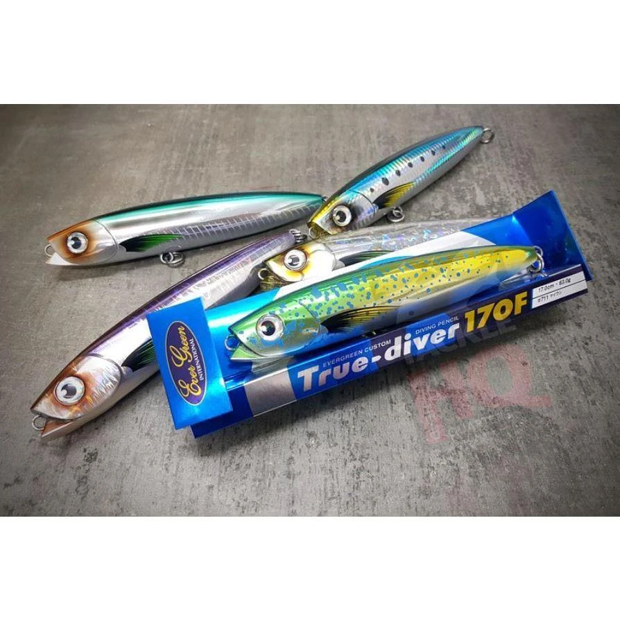 The Ever Green True Diver is a 170mm, 63g stick bait that is designed to have some bite or “dive” as you work it across the surface which is sure to do some major damage on any surface feeding fish